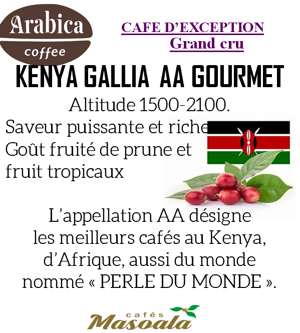 Le café grand cru du Kenya AA Gallia est un café 100% arabica corsé.